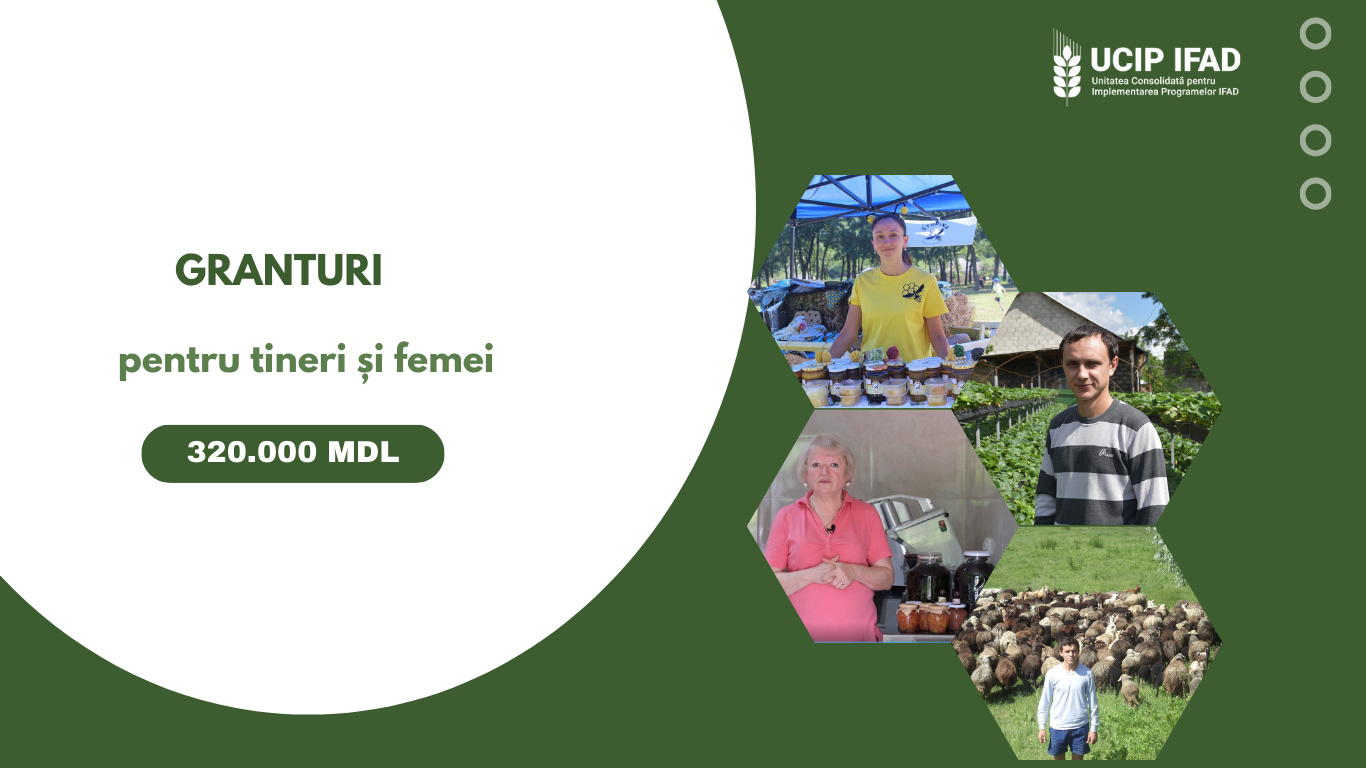 Tinerii și femeile, care desfășoară activități economice în domeniul agricol și dețin sau arendează până la 10 ha de teren, pot accesa un suport financiar de până la 1 milion MDL pentru dezvoltarea capacităților de producție.