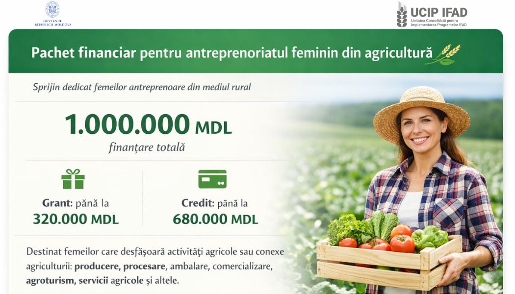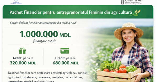 Femeile din mediul rural care își doresc să dezvolte sau să lanseze o afacere în agricultură pot beneficia de sprijin financiar și suport tehnic printr-un pachet special de finanțare oferit de UCIP IFAD, destinat consolidării antreprenoriatului feminin.